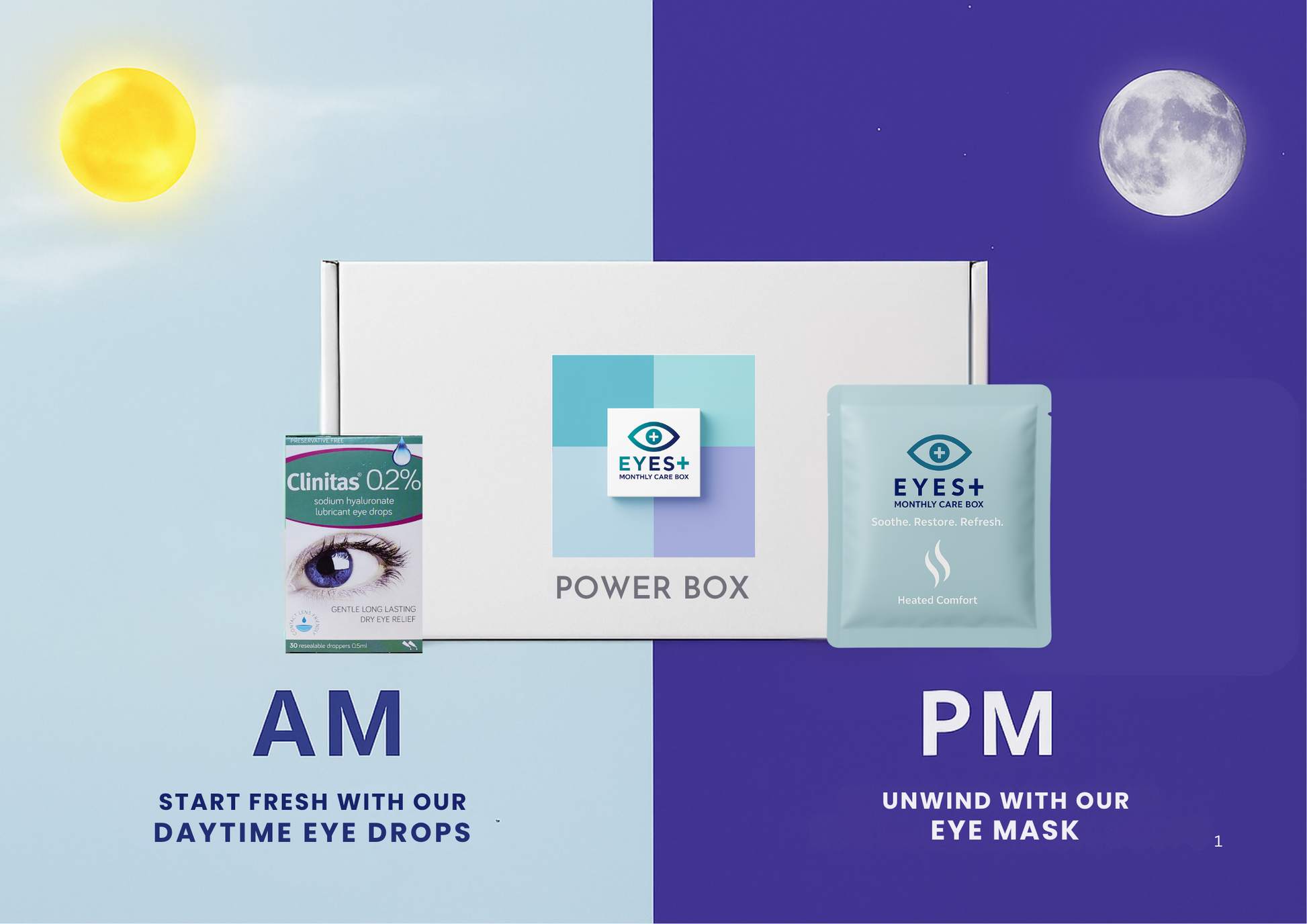 Daily eye comfort routine with steam masks and drops for screen users experiencing occasional eye tiredness.